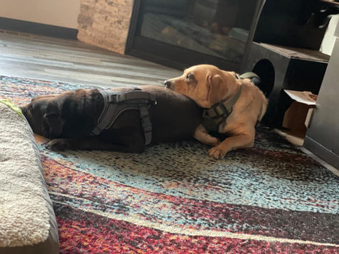 Today Buddy (and his brother Baxter) are living with their forever family that even includes 2 other lab siblings.